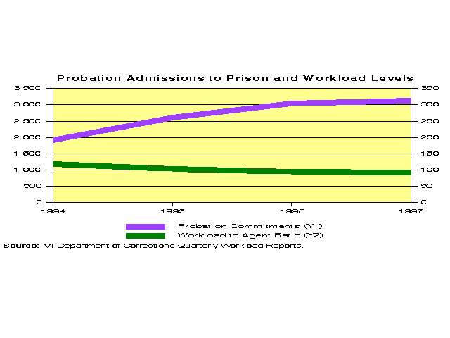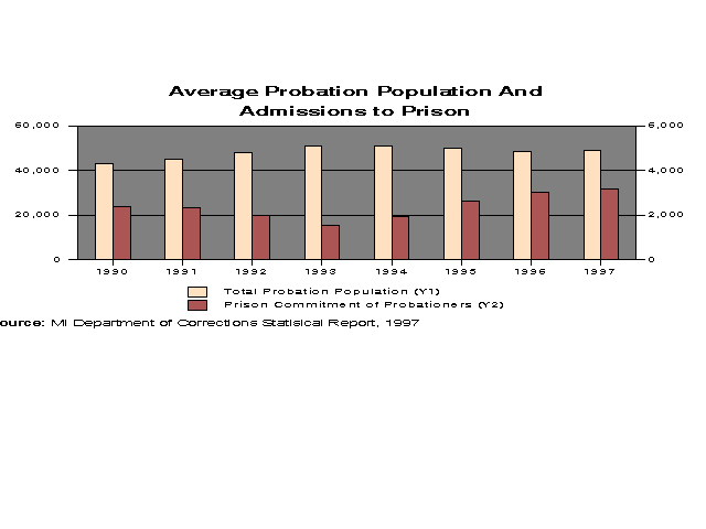 probation population increased from 1990 to 1994 by 18%. In 1995, the number